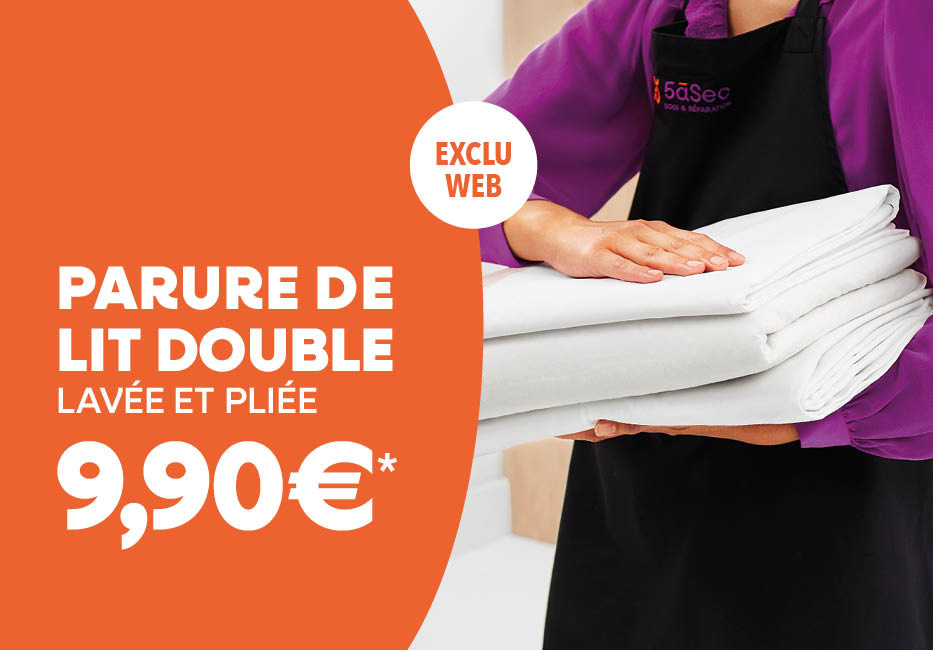 Pour 9,90€ seulement, achetez en ligne et bénéficiez du lavage professionnel et du pliage soigné de votre parure de lit double, incluant :